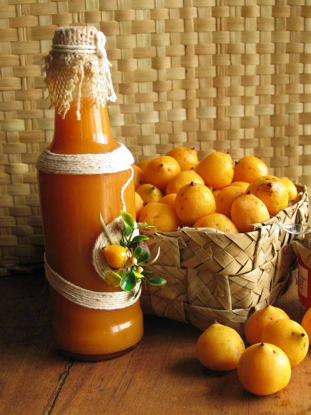 Esta fruta apresenta grande variação na cor da casca quando madura, indo do amarelo esverdeado até o vermelho. Sua polpa é doce-ácida e rica em fibras, carotenoides (provitamina A) e vitamina C, além de minerais como o potássio. Ações como atividade antioxidante, probióticas e redução de glicemia, têm sido relatado sobre esta fruta.